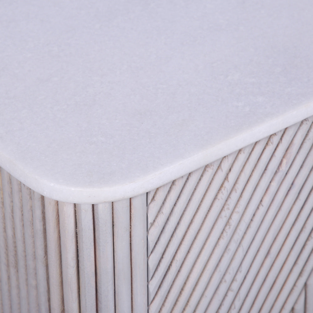 Discover luxury and sophistication with Amiri 2 Door Sideboard AMI06. Featuring smooth marble surfaces, rich mango wood, and sleek gold iron, this piece exudes elegance. The detailed fluted designs add a touch of refinement, combining natural textures with sophisticated metallic accents for a timeless, modern appeal. Dimensions (W x D x H): 100 x 42 x 76 cm, Wood Type: Mango Wood, Top: Marble, Frame: Gold Brushed Iron, Weight: 48.70kg.