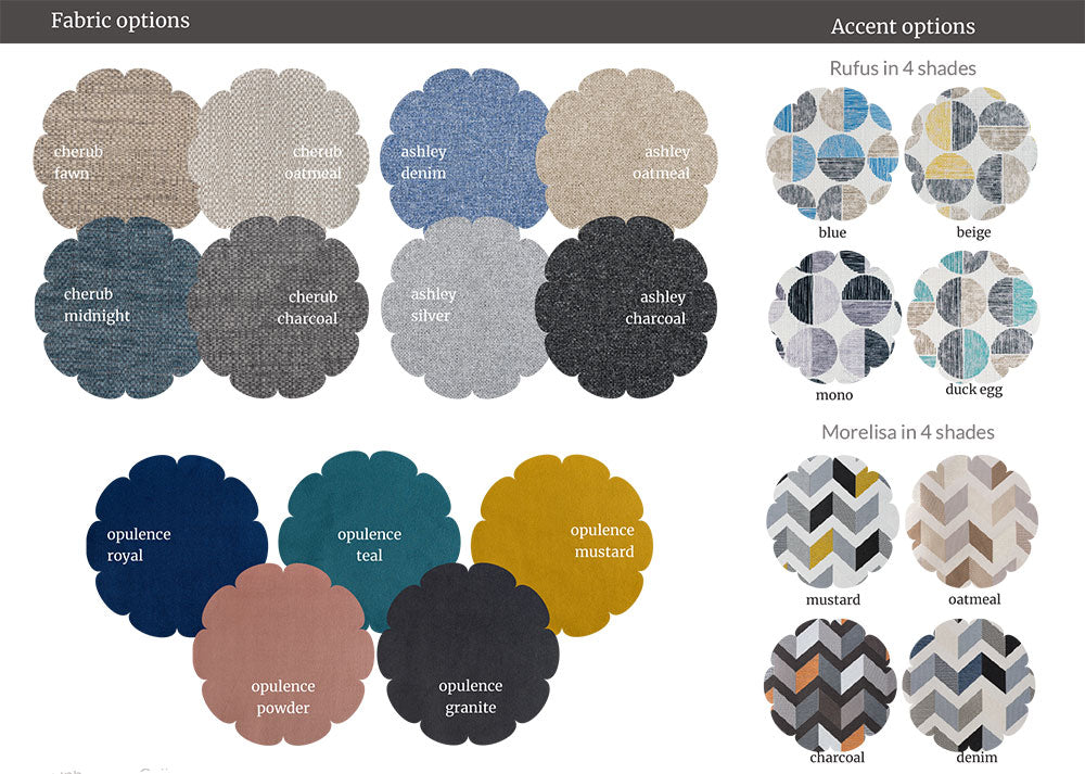 Seat cushions: polyester fibre-fill wrap over resilient, high-density
