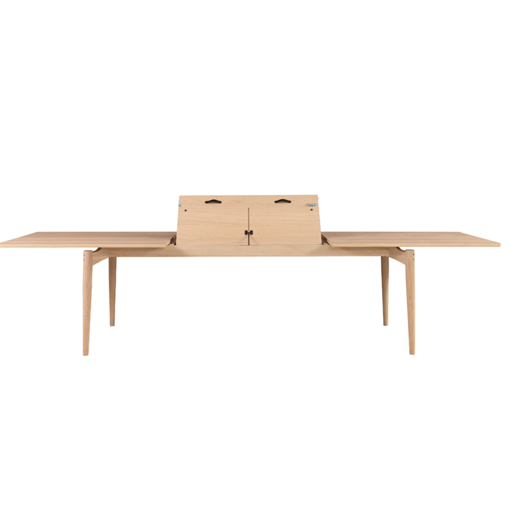 The top is split in the middle and hides a butterfly leaf that is easily unfolded by just one person.