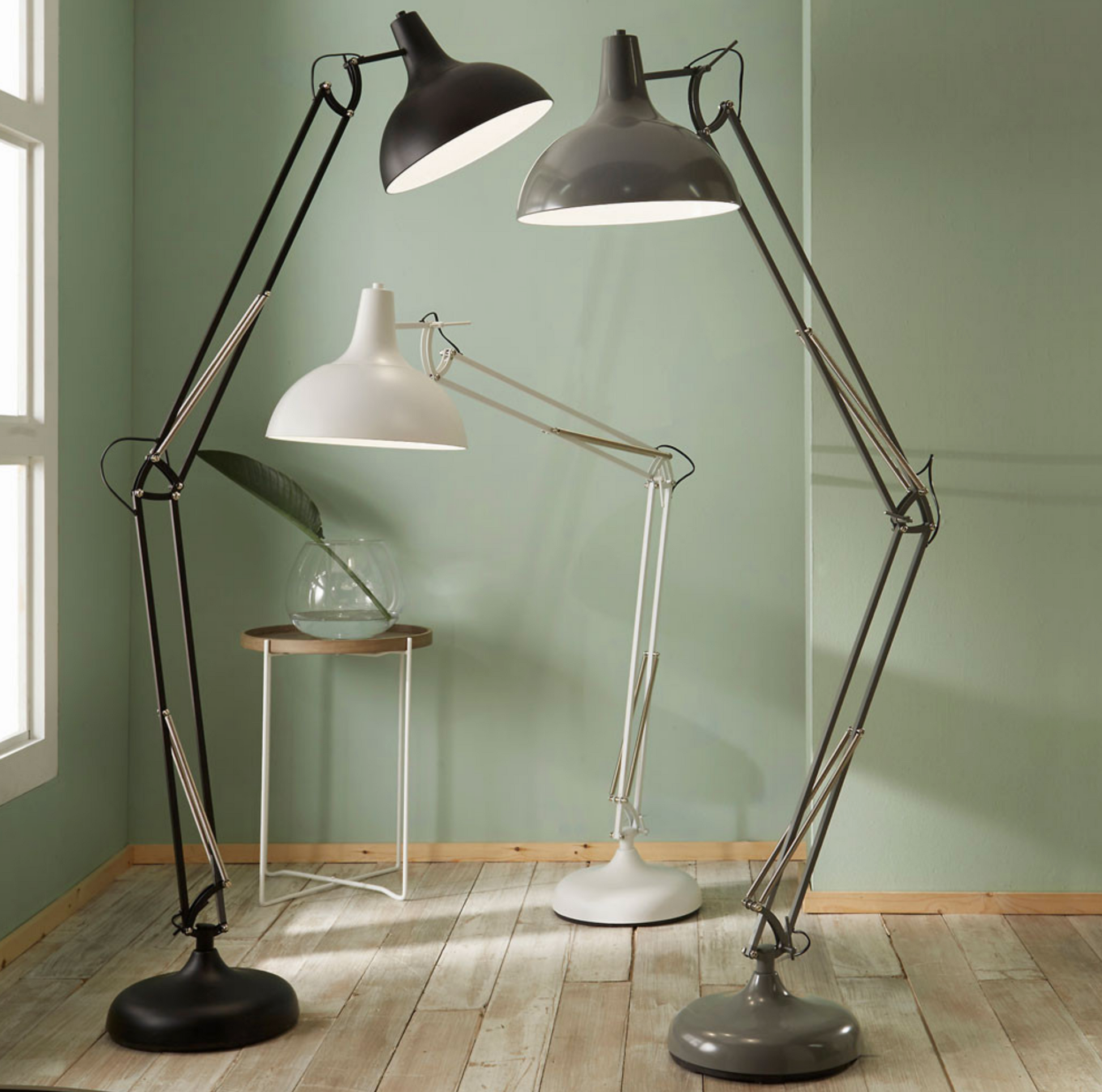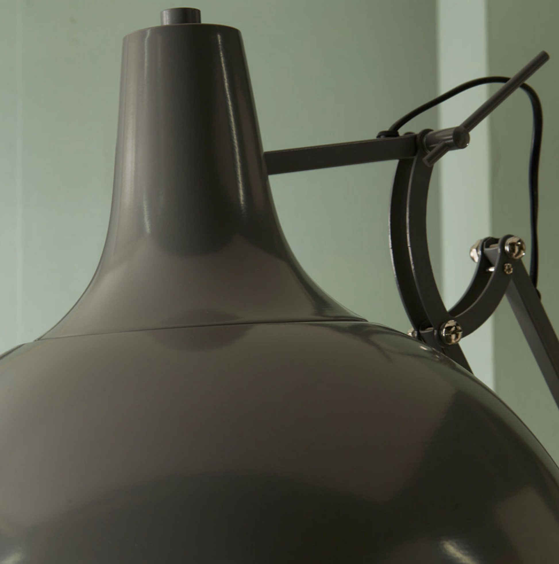 The classic design of the industrial task lamp in an oversized floor lamp. Quirky yet functional, this floor lamp has an adjustable arm and head for directional lighting where required. Finished in a matt grey you can make a statement in any room in the home with this iconic product. Also available in shiny copper, brushed brass, matt white and matt black.
