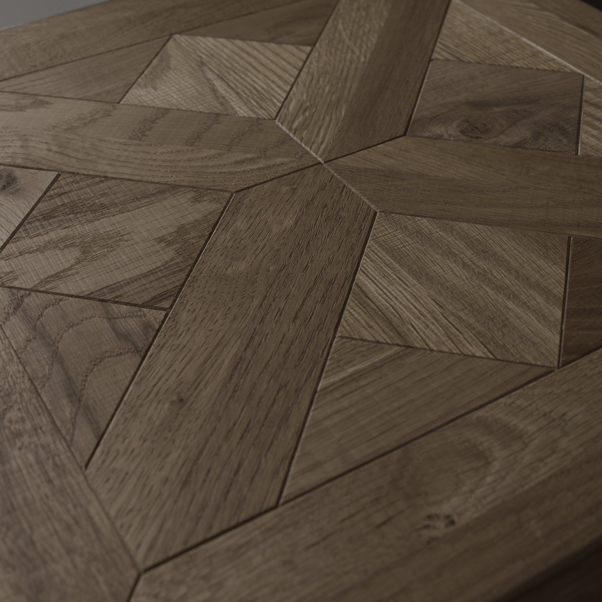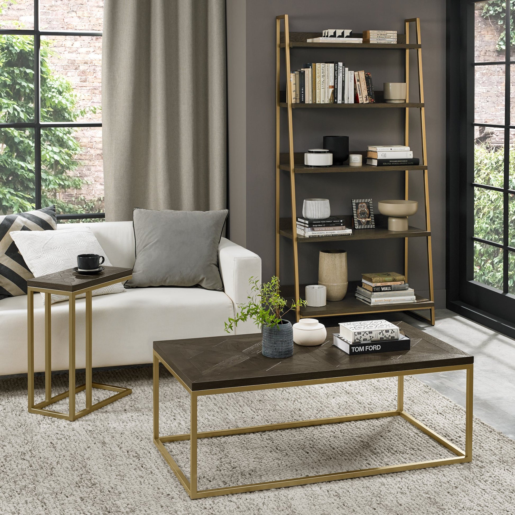Able to elevate any living space, the Athena Sofa Table seamlessly blends style and function. Its top comprises a dark ‘peppercorn’ stained finish with wire-brushing detail while its hand-crafted patterns serve to enhance the natural grains in the oak wood. A satin brass finished base provides a smooth contrast to the rustic top.
