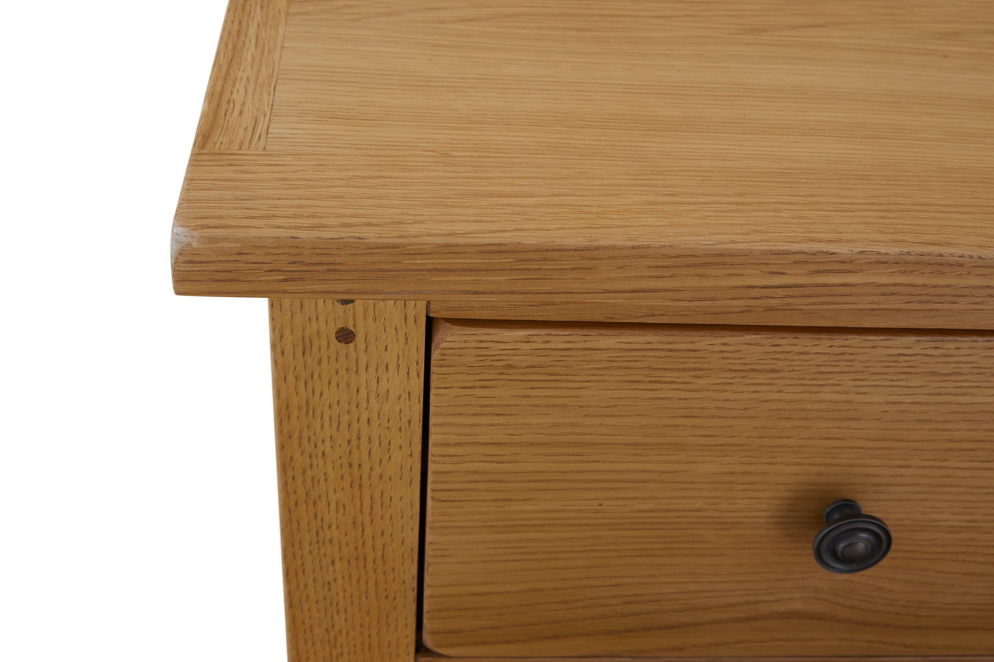 This is a hand wax finished chest of drawers which has two side by side drawers above three full width ones. It has a slightly distressed finish and features shaker style legs as well as exposed dowel pegs. The chest comes with both types of handles so you can choose which you prefer once it is a bedroom. This is a great chest of drawers that offers lots of storage space for the little floor space it takes up, and every drawer has dovetailed joints for extra strength