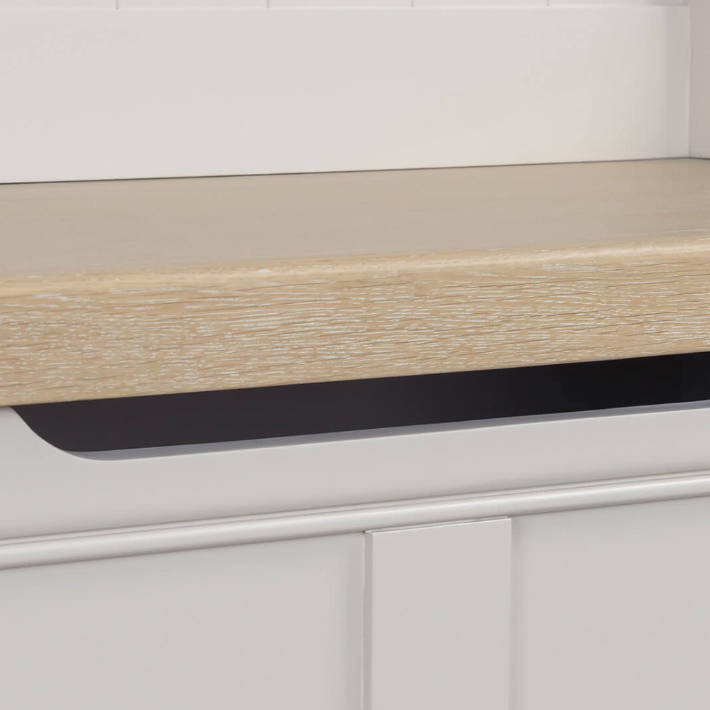 Doune Hall Stand in Taupe brings functional elegance to any entryway with its classic two-tone design. Featuring a washed oak top, painted taupe finish, metal hooks, and a convenient storage drawer, it offers a stylish solution for organising coats, bags, and everyday essentials.