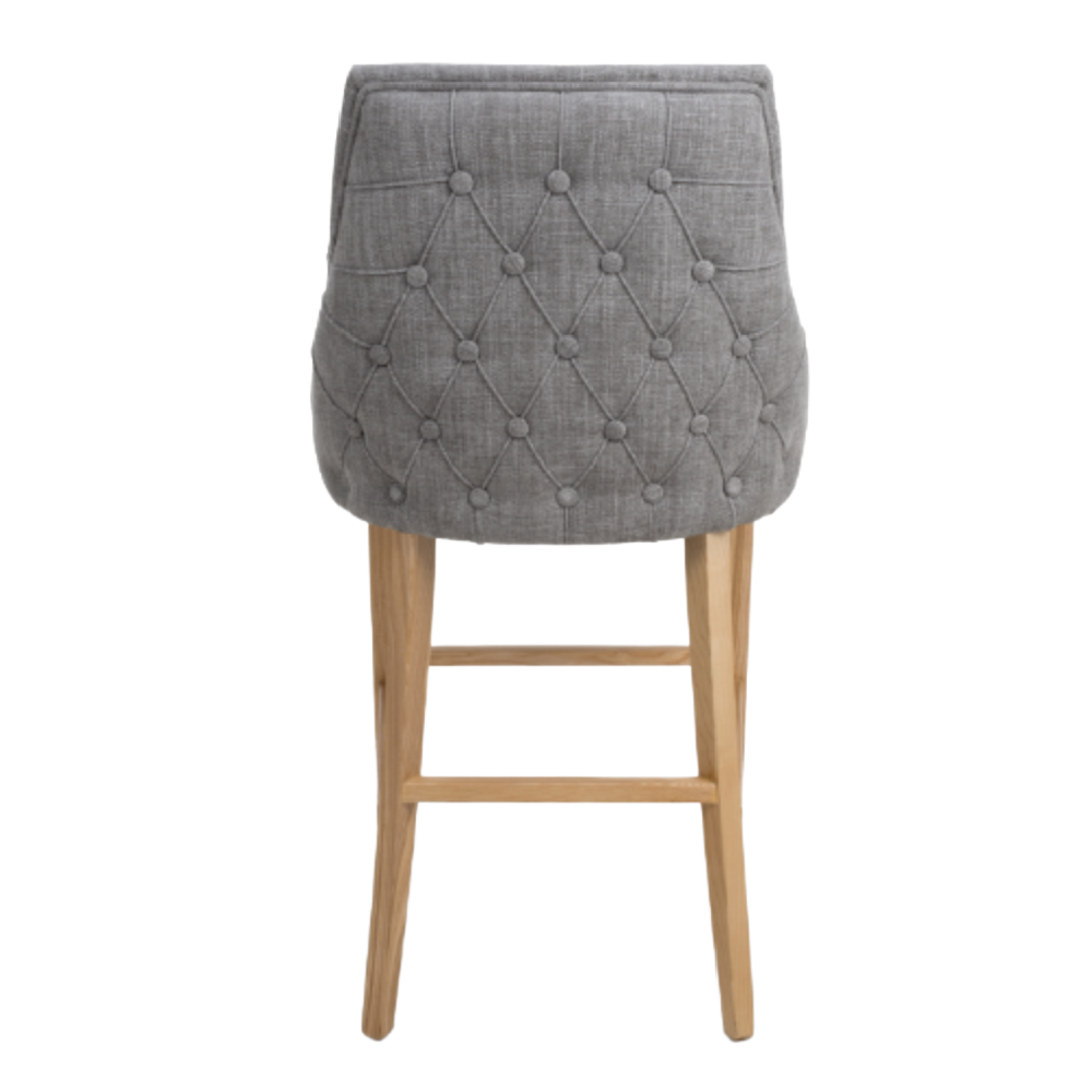 Cole Grey Fabric Buttoned Bar Stool Chair with Oak Legs