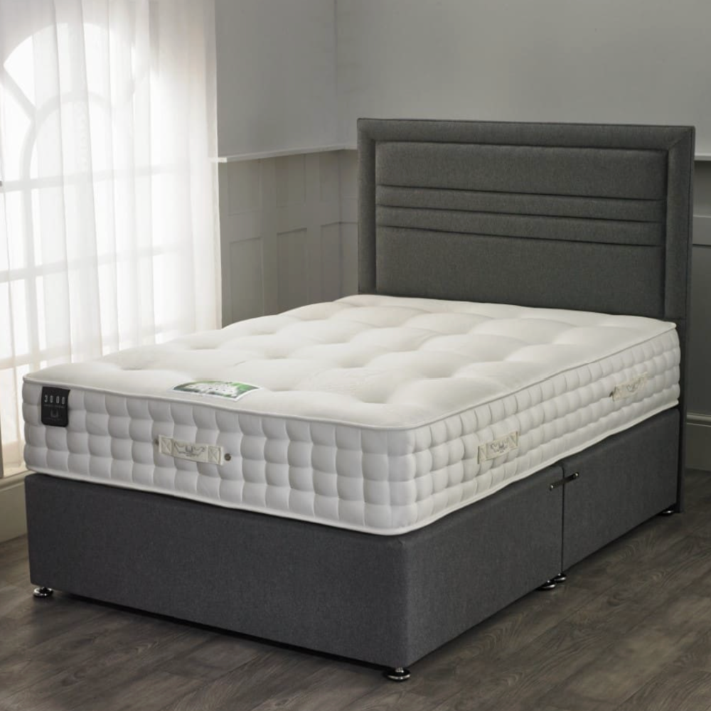 2000 individual pocket springs with a cooling, pressure relieving blue foam, plus a cooling outer fabric for those who are more susceptible to over heating in bed at night. A medium to firm tension on the spring to add to the overall comfort.