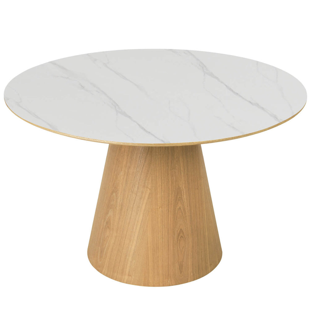 Indy Round Dining Table 1200 in Sand is an ideal choice for both minimalist spaces and family homes, offering everyday strength and durability. Its contemporary design features a stunning marble pattern ceramic top that's not only stylish but also easy to clean, making it perfect for daily use. The sturdy wood veneer base adds a warm, natural touch, ensuring this table blends seamlessly with modern decor.
