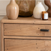 Introducing the Jude Reclaimed Wood 3 Drawer Chest Of Drawers - a luxurious fusion of rustic allure and contemporary sophistication. Meticulously crafted from 100% reclaimed FSC-certified wood, this collection boasts a captivating chevron pattern that adds both texture and visual intrigue to any bedroom. The natural variations in the wood grain highlight the distinct character of reclaimed materials, guaranteeing a one-of-a-kind piece. Complete with sleek metal handles for a touch of modern elegance, complement this chest with other items from the range, such as matching wardrobes and chests, to create a cohesive and environmentally-conscious bedroom set. Chevron Design with Metal Handles Hand crafted from 100% reclaimed FSC timber Matching items available including Wardrobe and Chests.