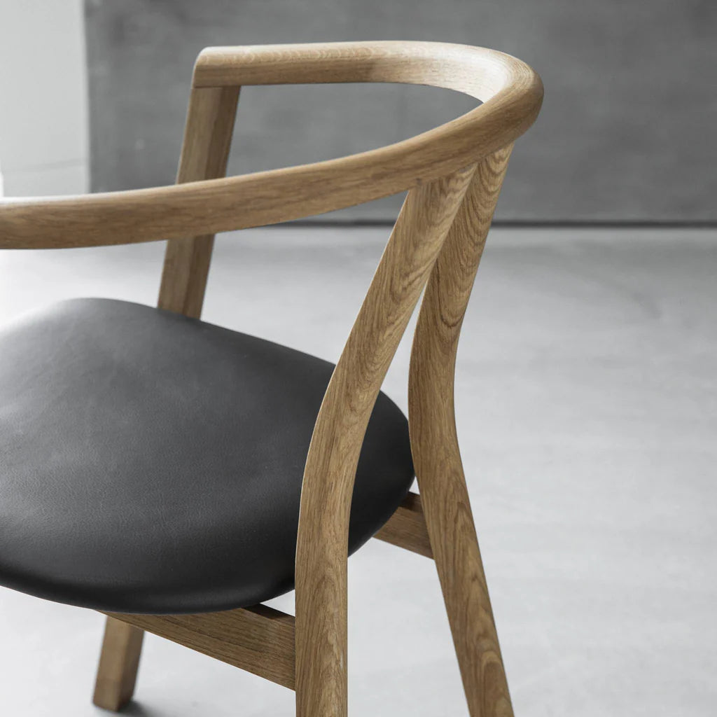 The METRO chair is characterized by the organic curved armrests and the back legs, which in an elegant way also serve as a comfortable support for your back.