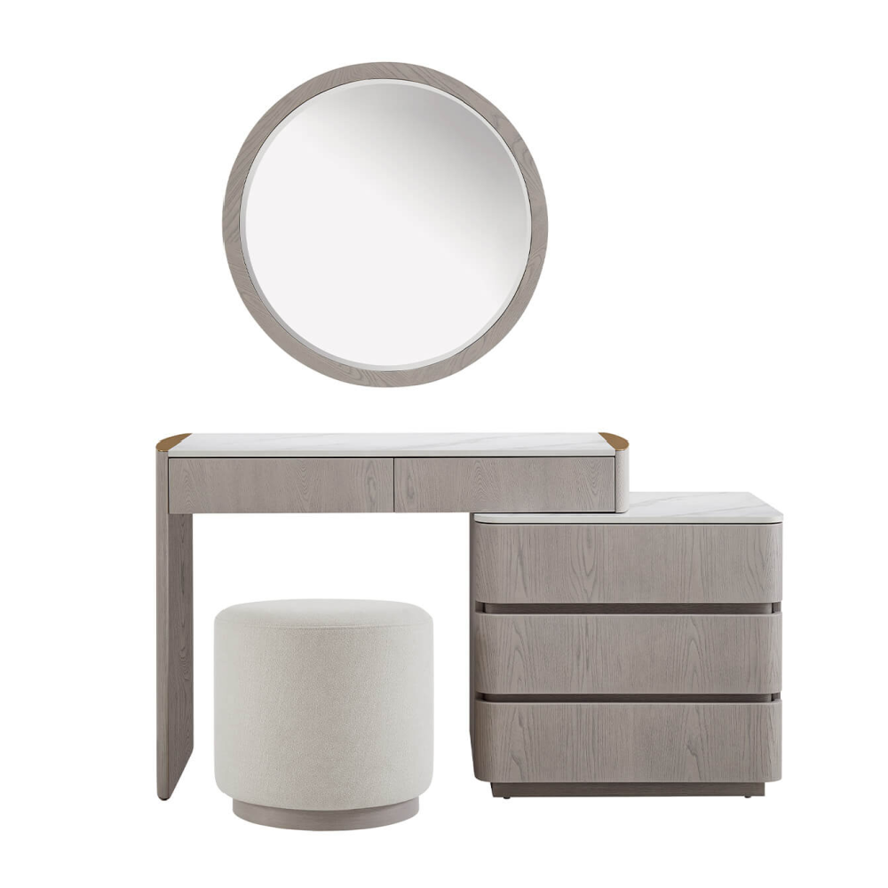 Mondello Round Mirror in Washed Oak adds a touch of refined elegance to any space. Designed with a luxurious frame that complements the Mondello range, it features high-quality tempered glass for durability and safety. Perfect for pairing with the dressing table or dressing chest or as a standalone accent piece in modern interiors.