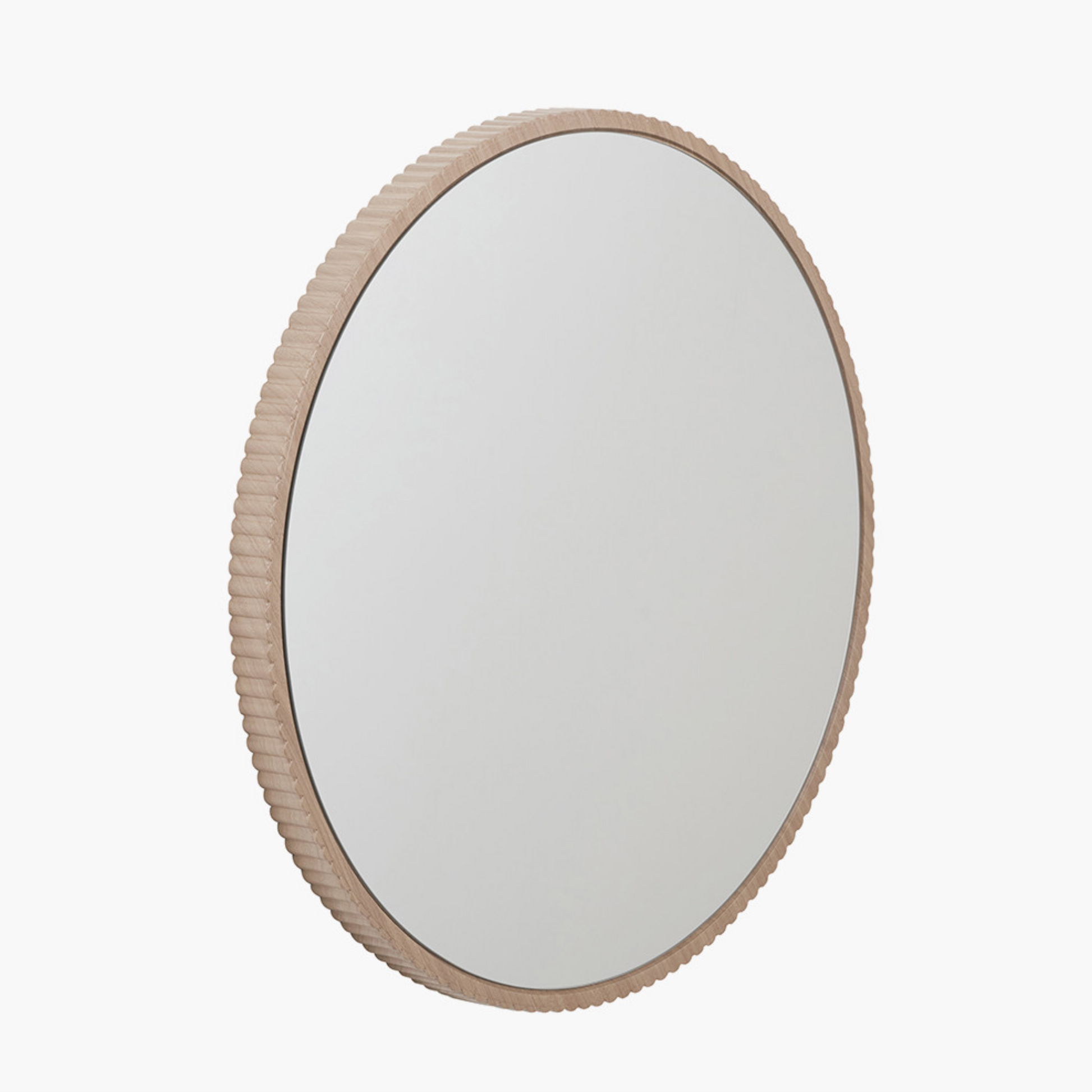 Natural Oak Wood Veneer Textured Edge Round Wall Mirror