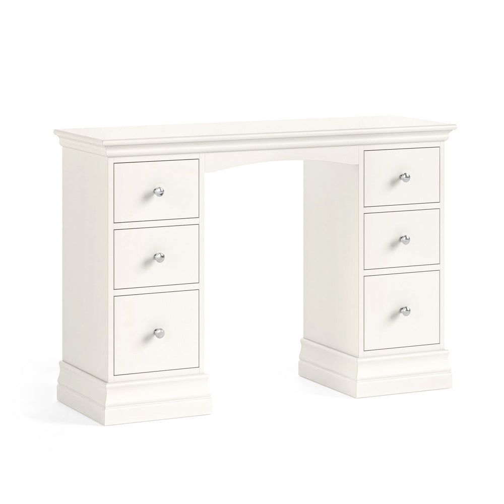 The Salcombe Double Pedestal Dressing Table transforms your bedroom into a proper dressing room with its generous storage and elegant proportions. Six substantial drawers—three in each pedestal—provide dedicated space for makeup, skincare, jewellery, hair accessories, and grooming essentials, keeping everything organised and within easy reach.