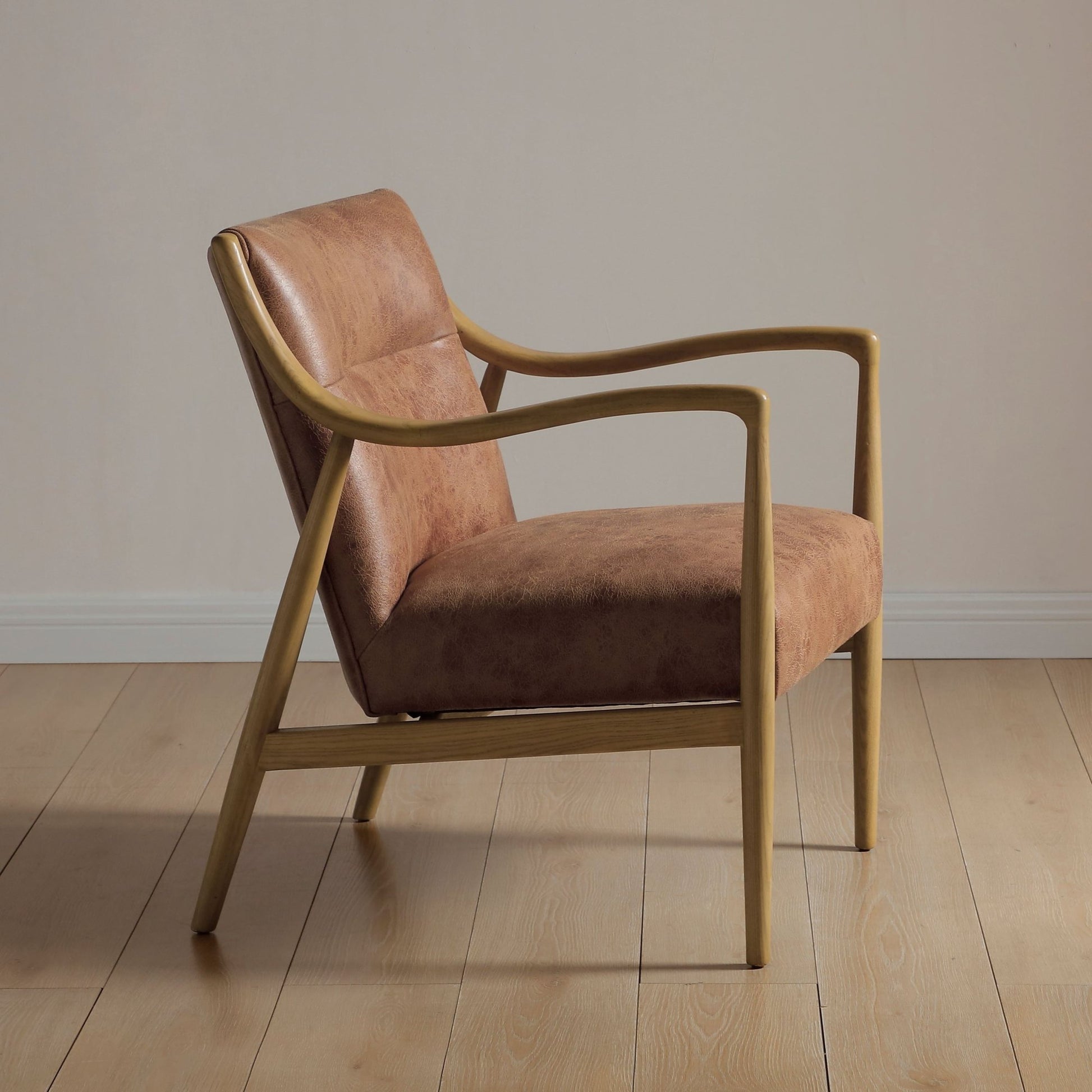The Tarquin Chair features a striking wood frame with beautifully curved arms and spindly style legs. This elegant chair is upholstered in a choice of boucle in natural with dark ash frame or tan vintage leather with light ash frame. The grey boucle with oak frame will be discontinued.