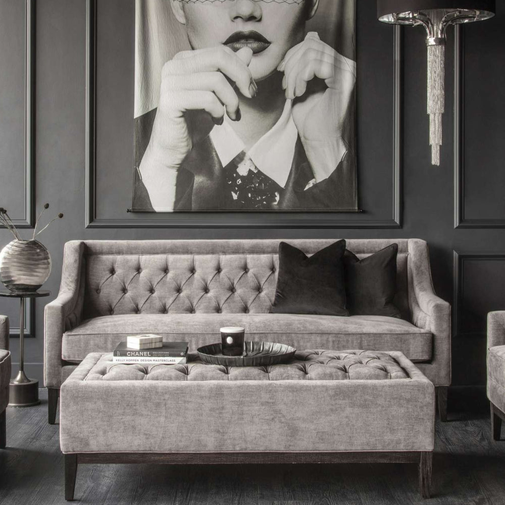 Theodore Buttoned Sofa in Warm Grey Fabric 200cm