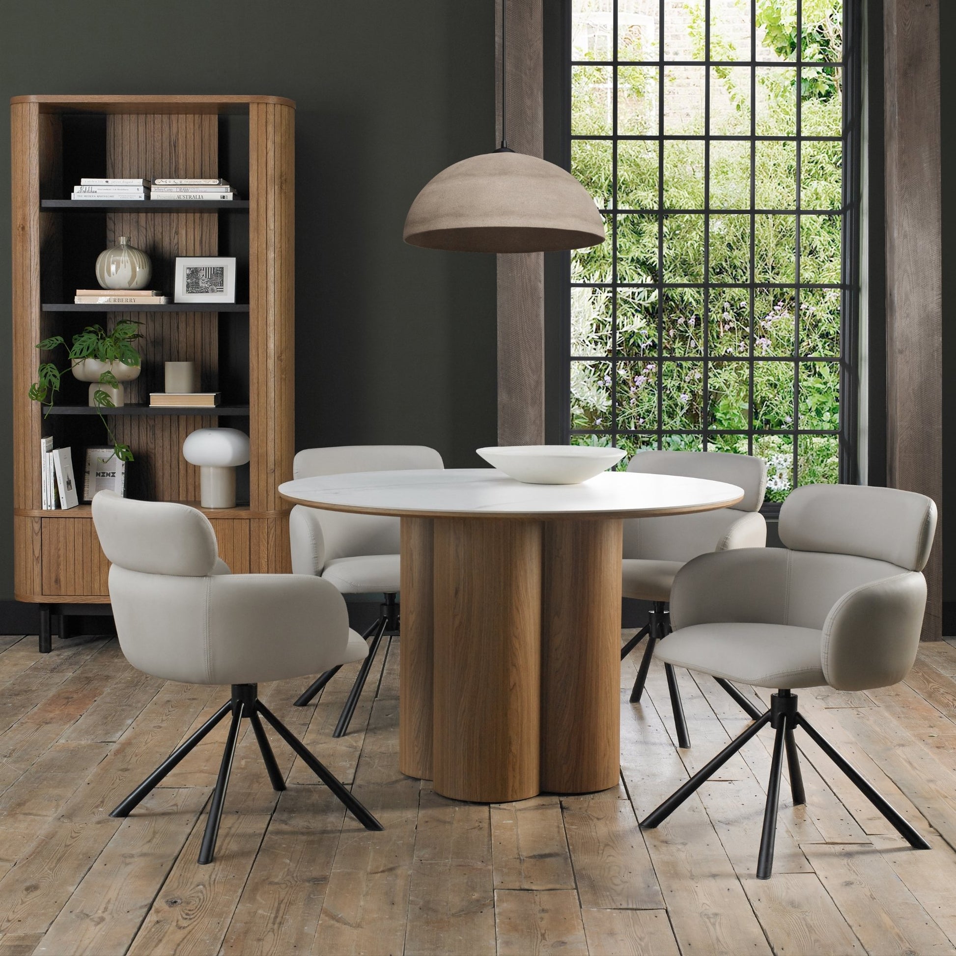 Warren Matt White Sintered Stone 4 Seater Table with Oak Veneer Pedestal