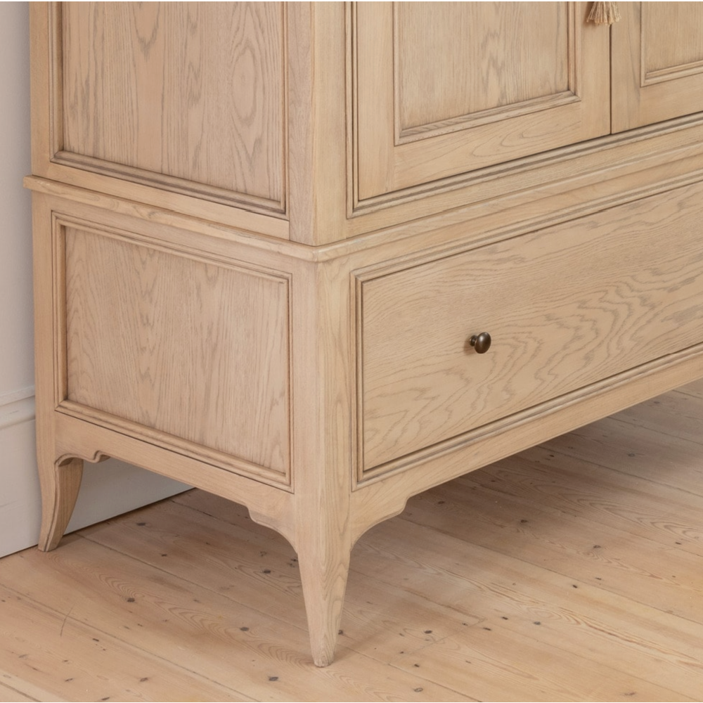 Inspired by classic French cabinetry, Toulon is a beautifully re-imagined bedroom collection with an understated feminine charm.The honed skills of the artisan can be seen in the effortless combination of the refined curve to the legs, the double bead detail, and the hand-crafted profiles throughout the range.Carefully selected for their alluring grain character the oak solids and veneers are hand finished with white hue laquer. Authentically aged brass handles complete the aspirational curated look.We think you will agree Toulon radiates an inherent, timeless and individual beauty that will endure for years to come.
